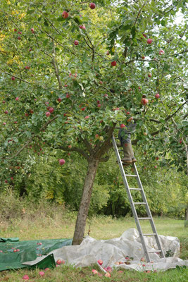 Dieses Jahr tragen die Bäume reichlich. So viele Äpfel wie an den Bäumen hängen, können wir gar nicht verarbeiten! In Windeseile hatten wir unsere Säcke gefüllt und konnten zum Abschluss ein geselliges Picknick genießen. Danke an alle Helferinnen und Helfer, Picknickspenden, und "Hänger-Zieher", die zum Gelingen beigetragen haben!