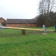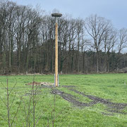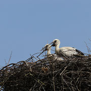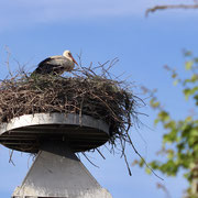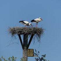 2017 wurde das Storchennest auf einem Nistmast errichtet. Bereits 2018 wurde die erste erfolgreiche Brut dokumentiert (Nest W 14).