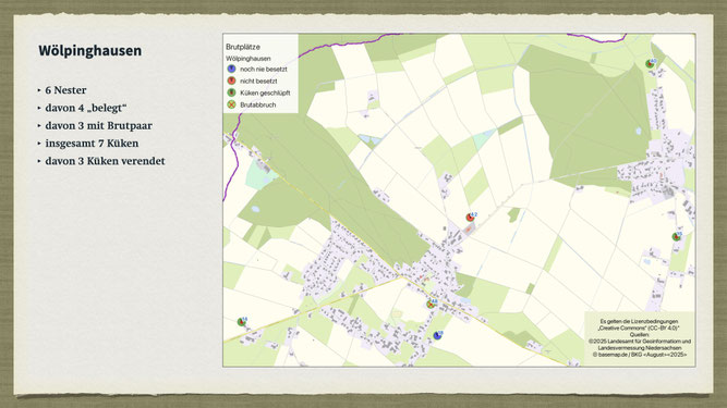 Das Nest besteht seit 2024 und wurde gleich bebrütet.(Nest W 48). In 2025 erfolgte wohl ein Brutabbruch.